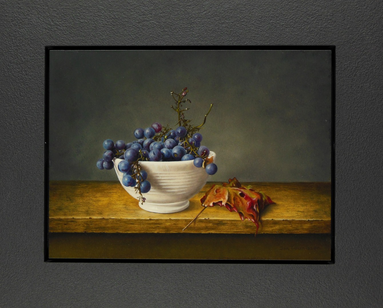 Upon delivery, the paintings are standard floating framed in a sleek matte black diagonally finished barge. The single width of the table is dependent on the size of the painting, and is about 55, 75 or 95 mm. Click on the accompanying photo to enlarge.